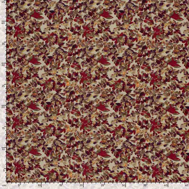 Offrez à vos créations la douceur d’un automne lumineux grâce au tissu viscose imprimé Floral Brousse Fond Lin, sélection exclusive de Tissu Fil et Compagnie. Sur une base beige naturel semblable à du lin brut, un semis de pétales abstraits mêle brique, ocre doré, lie-de-vin et touches kaki. De près, chaque forme évoque un coup de pinceau artistique ; de loin, le motif se fond en un micro-floral subtil qui valorise toutes les silhouettes sans surcharge visuelle.