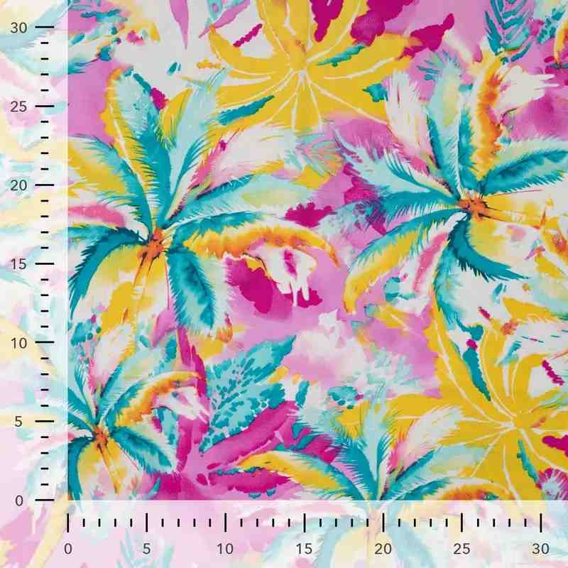 TISSU VISCOSE IMPRIMÉ PALMIERS TROPICAUX ROSE