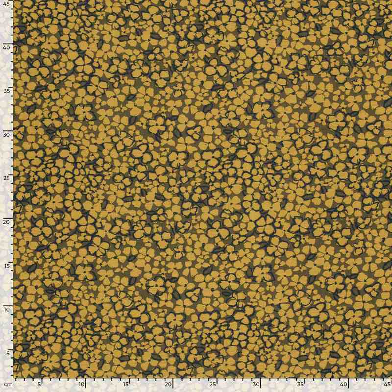 Plongez vos projets couture dans une palette automnale chic avec notre tissu viscose-polyamide imprimé floral moutarde et kaki, exclusivité Tissu Fil et Compagnie. Son micro-motif de petites fleurs ocre relevé de légers tracés bleu nuit se détache sur une base kaki douce, offrant un rendu chaleureux et sophistiqué. De près, on apprécie les détails délicats ; de loin, le motif forme un semis élégant qui valorise toutes les silhouettes sans les alourdir.