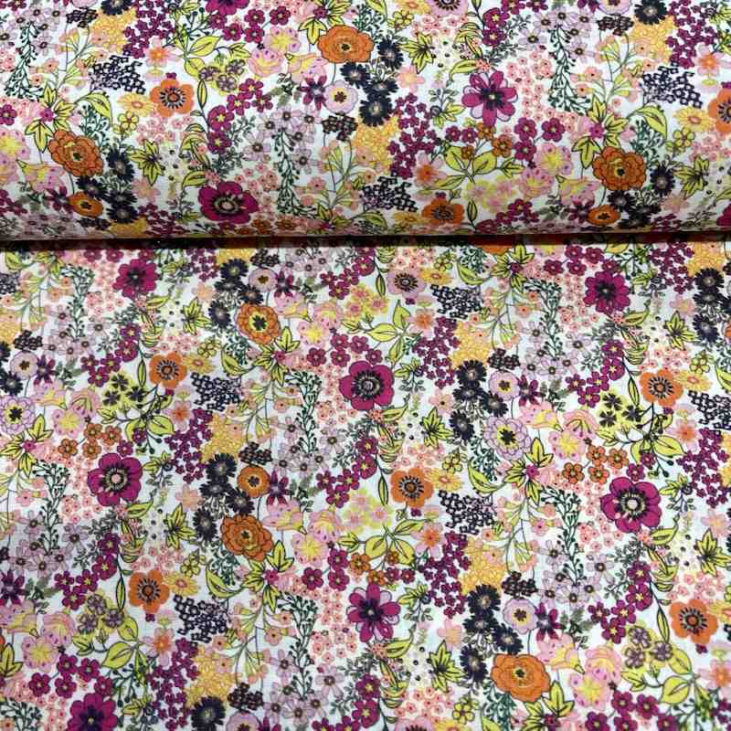 Laissez-vous séduire par ce tissu coton fleuri multicolore, idéal pour donner du caractère à vos ouvrages et apporter une touche joyeuse à votre atelier couture. Un incontournable pour des créations modernes, créatives et soignées.