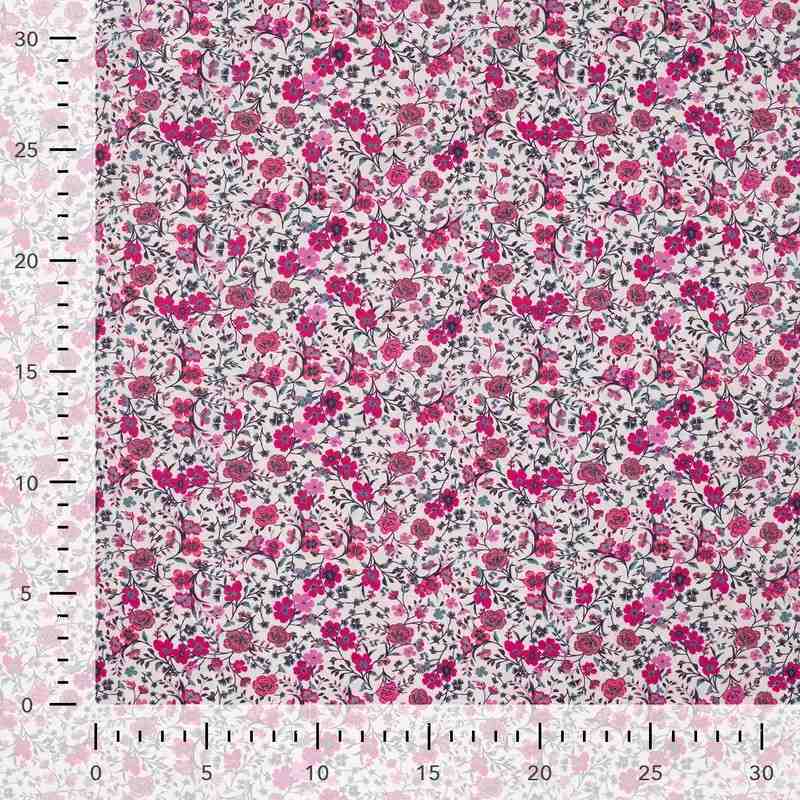 TISSU VOILE DE COTON DIGITAL SEMIS ROSE FUSCHIA
