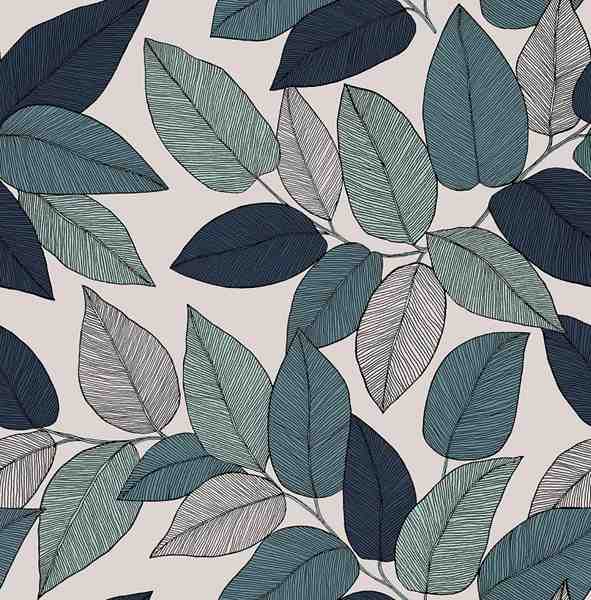 TISSU TOILE BACHETTE FEUILLES ETHNIQUES BEIGE VERT