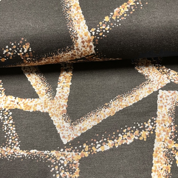 TISSU JERSEY IMPRIME GEOMETRIQUE FOND MARRON